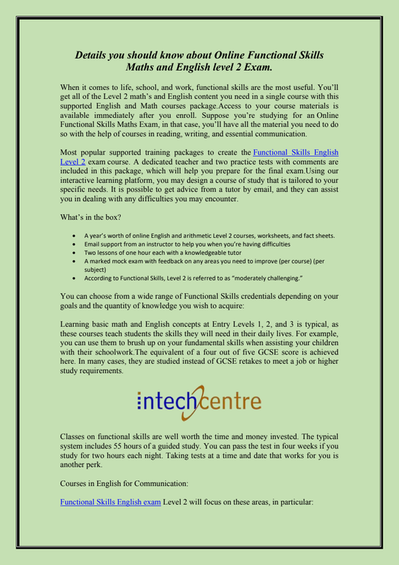 Details You Should Know About Online Functional Skills Maths And English Level 2 Exam.